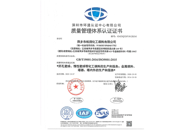 萍鄉(xiāng)市松潤(rùn)化工填料有限公司位于江西省萍鄉(xiāng)市國(guó)家經(jīng)濟(jì)開(kāi)發(fā)區(qū)西區(qū),是專(zhuān)業(yè)生產(chǎn)、經(jīng)營(yíng)陶瓷、聚丙烯、金屬填料、塔內(nèi)件、水處理濾板、濾管、濾料、瓷球、分子篩、催化劑、活性炭、蜂窩陶瓷、瓷質(zhì)耐磨托輥等系列產(chǎn)品的民營(yíng)企業(yè)。所有產(chǎn)品由國(guó)家非金屬材料和設(shè)備質(zhì)量監(jiān)測(cè)中心監(jiān)測(cè)檢驗(yàn)認(rèn)證。公司現(xiàn)有員工280人,其中有高、中級(jí)職稱技術(shù)人員36人。工藝先進(jìn),技術(shù)力量雄厚,產(chǎn)品質(zhì)量可靠,配...